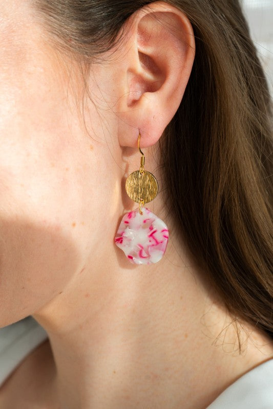 Get ready to make a statement with our Hannah Earrings in Cherry Blossom! These earrings feature a lightweight and unique abstract design with gold accents, perfect for comfortable all day wear. Elevate your style with a touch of quirkiness and fun.