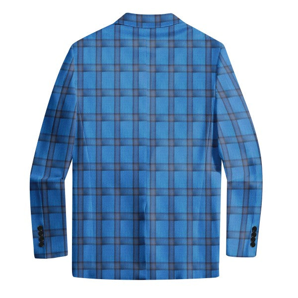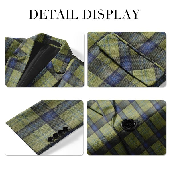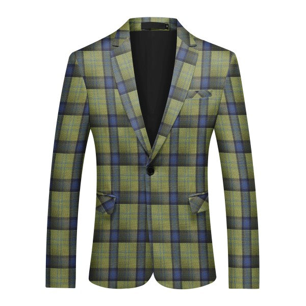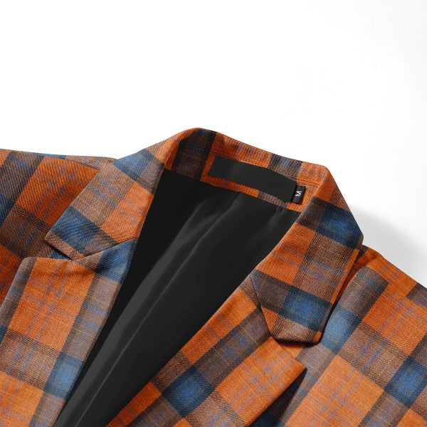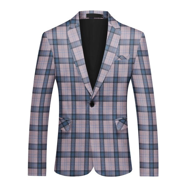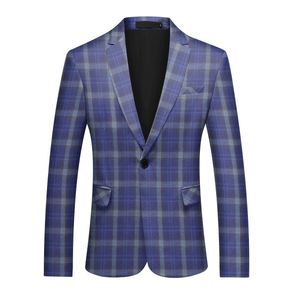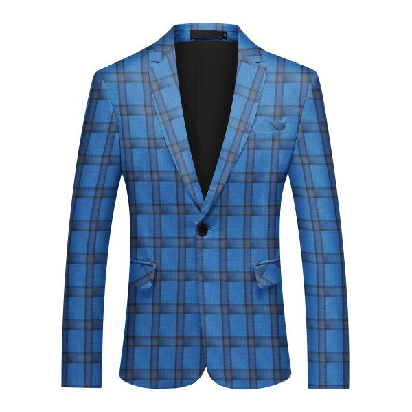 Slim-cut tartan blazer for a tailored fit. Broad-shouldered? Consider one size up. 3D cutting and full shoulder design highlight a man's silhouette. Multi-color options, great for year-round wearing.