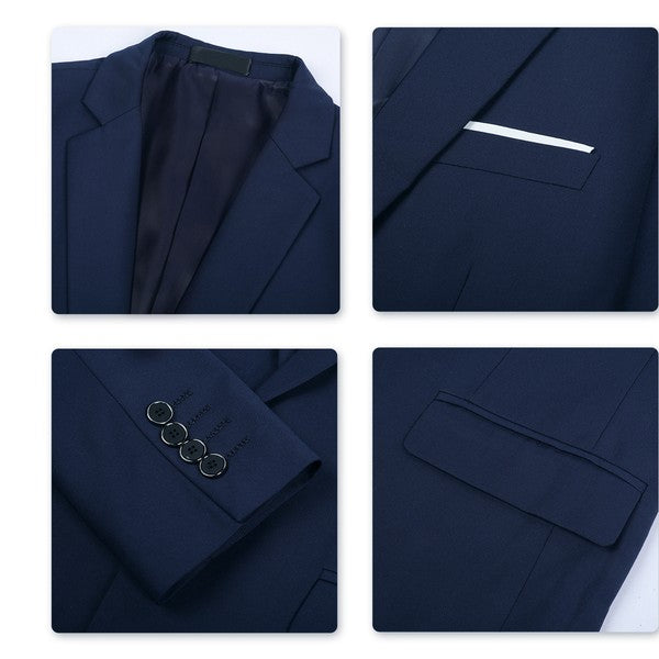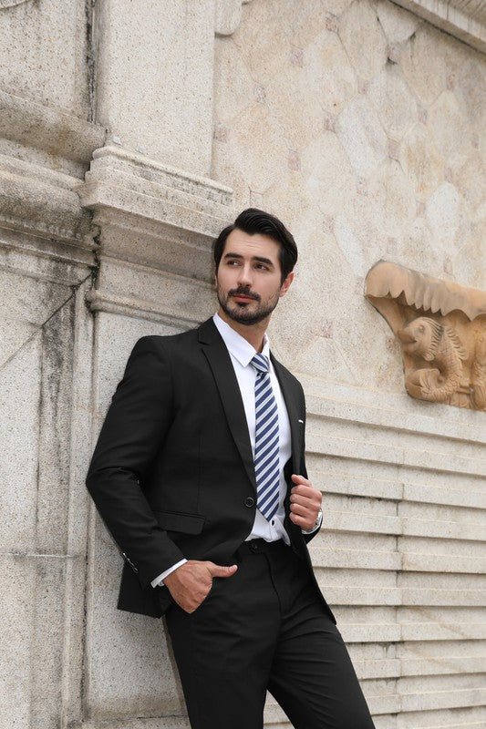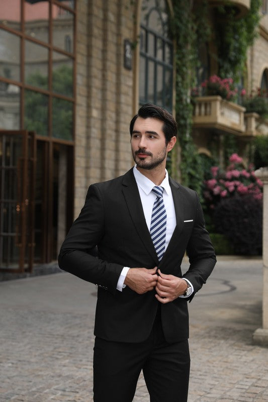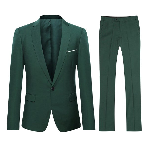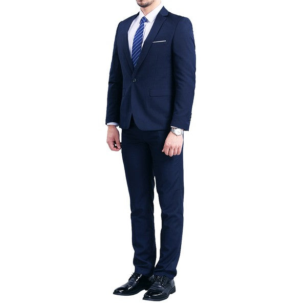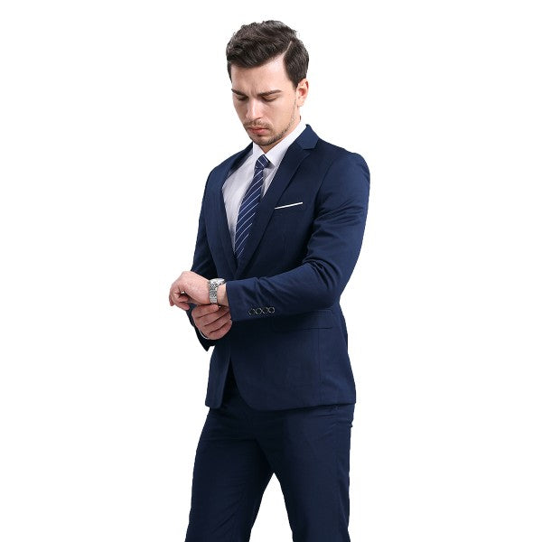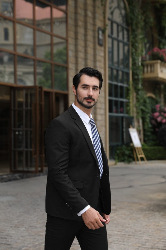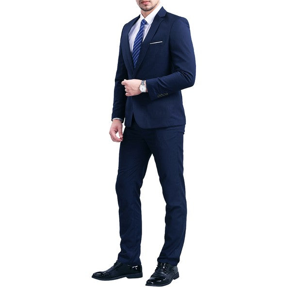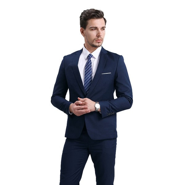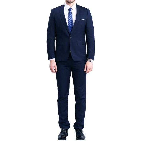 The single breasted suit features a notch lapel, full lining, back centre vent, 2 flap pockets, 1 chest pocket,and a one button as closure. This suit with full shoulder design and slim cut with 3D draping. Slim fit suits little tighter than a regular fit suit, slim fit style makes you look modern and sharp.