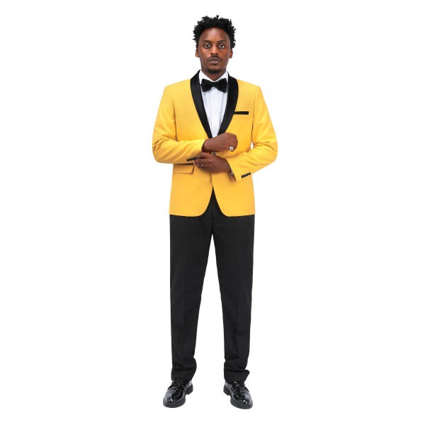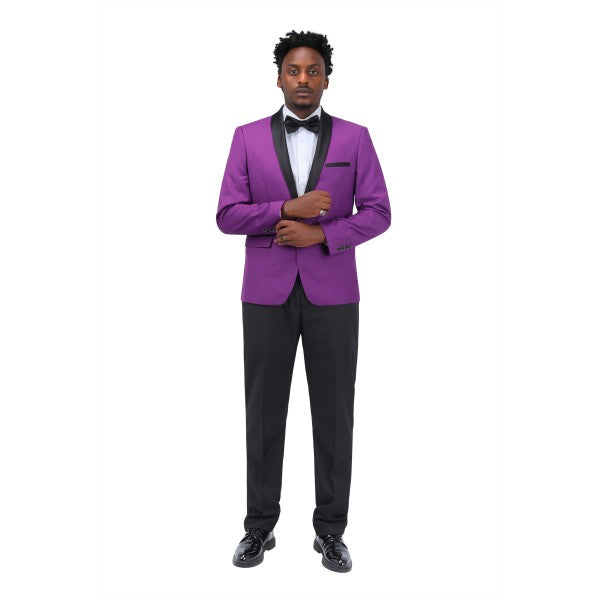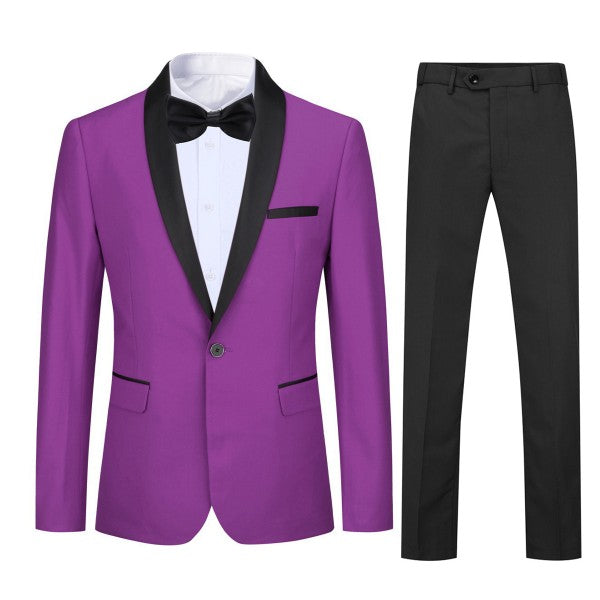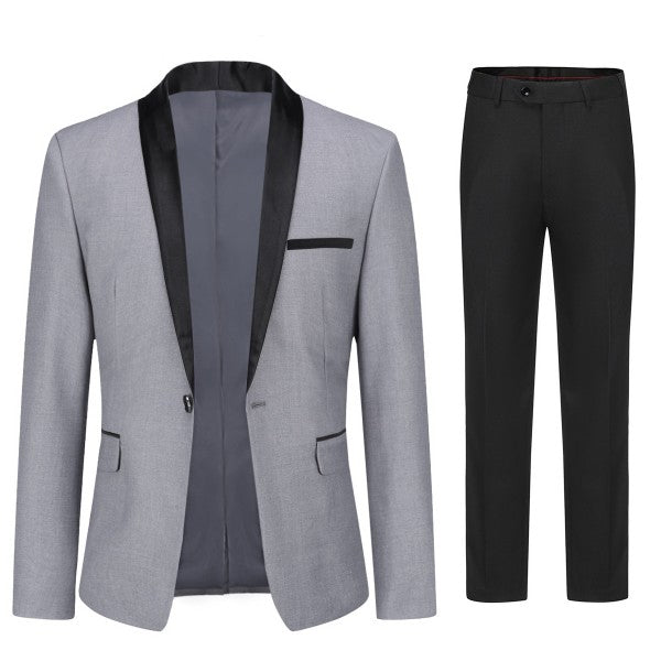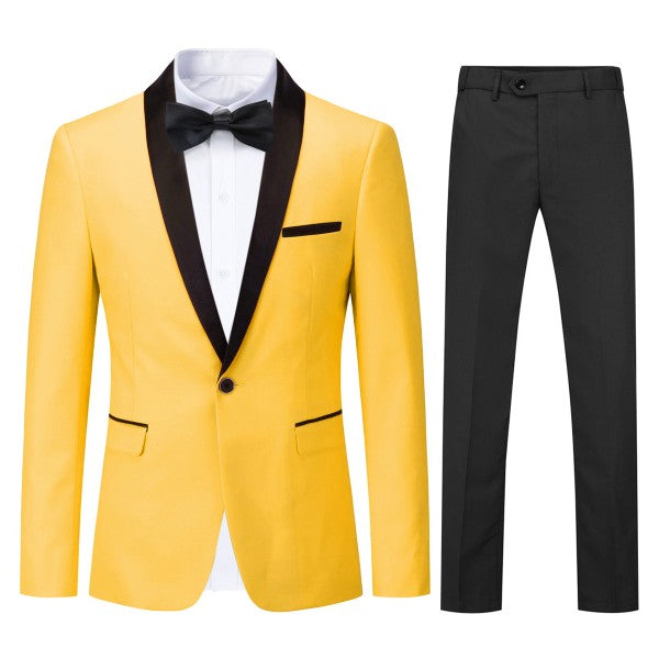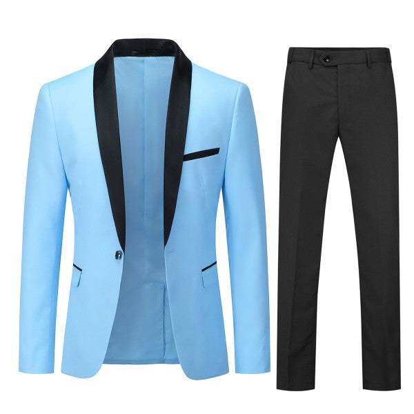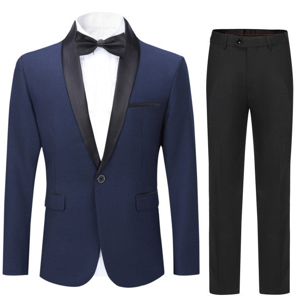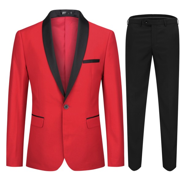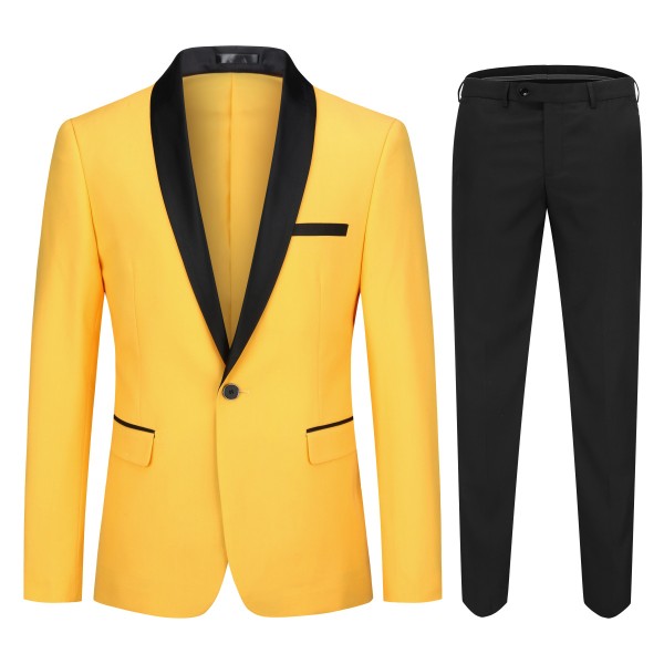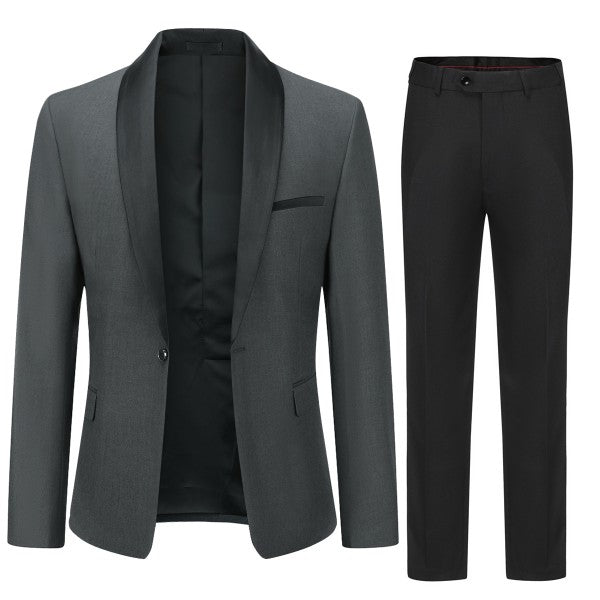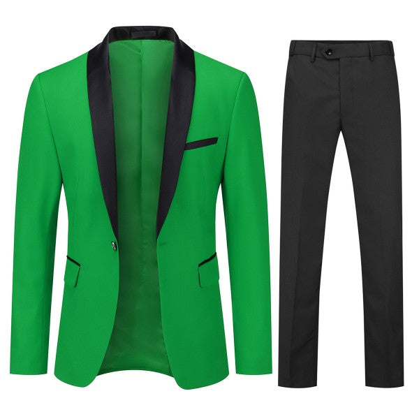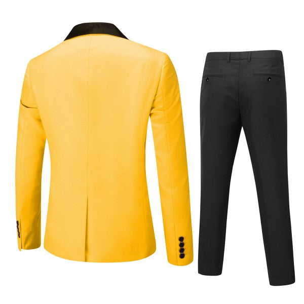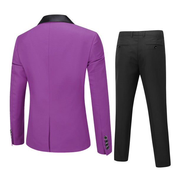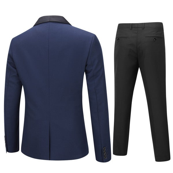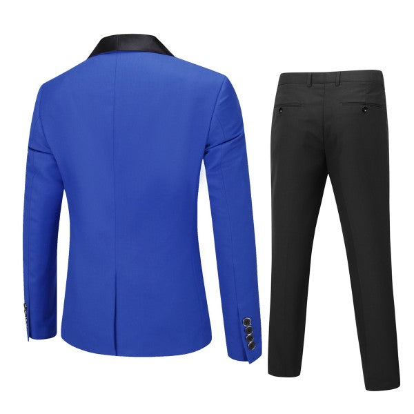 Mens 2 Piece Contrast Lapel 1 Button Suit Set