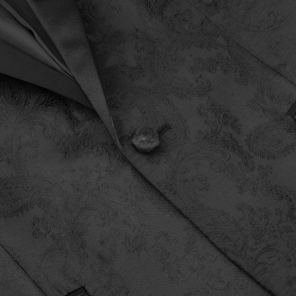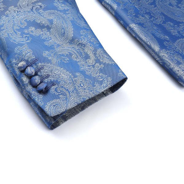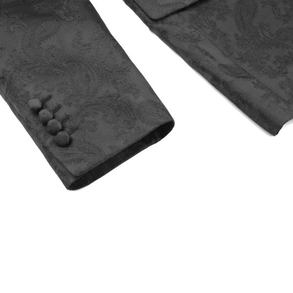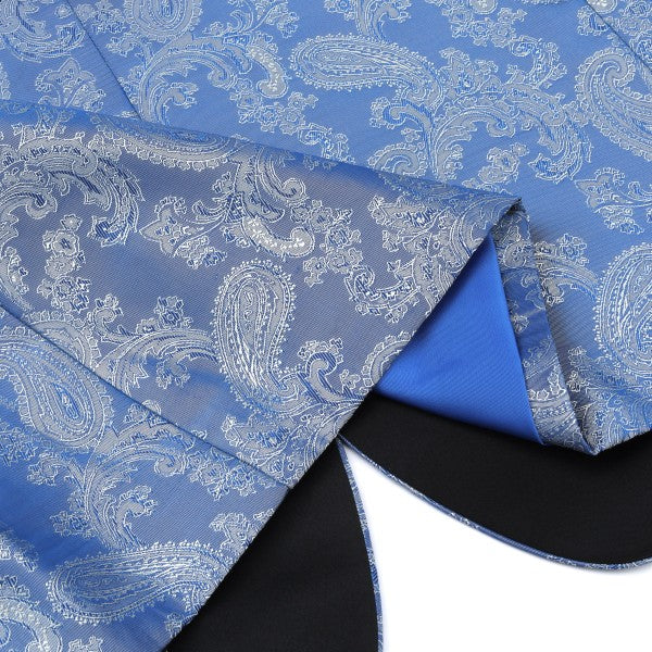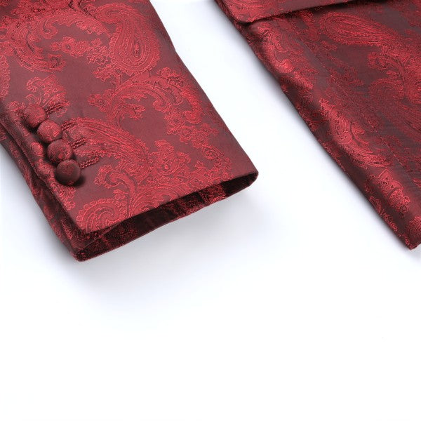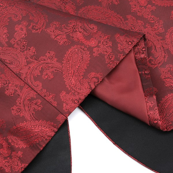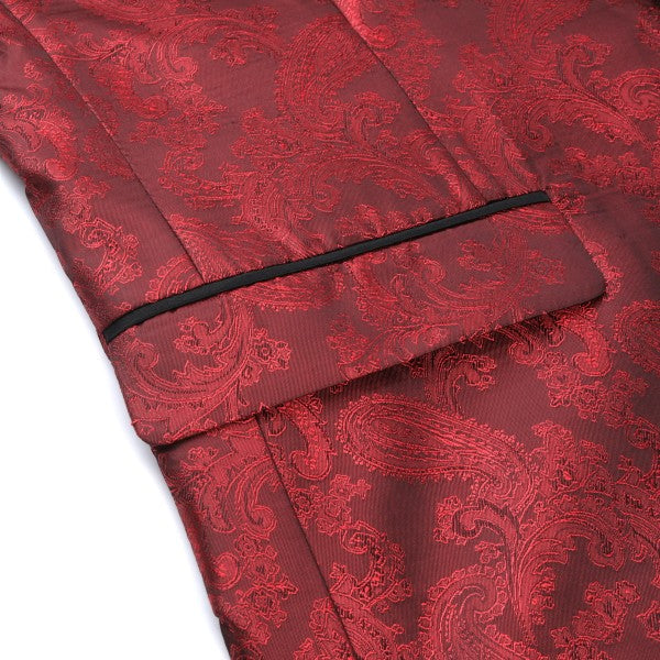 Bottom- flat front pants with slanted side pockets. Paisley pattern, three colors Black/Burgundy/Blue available.
