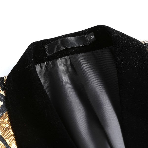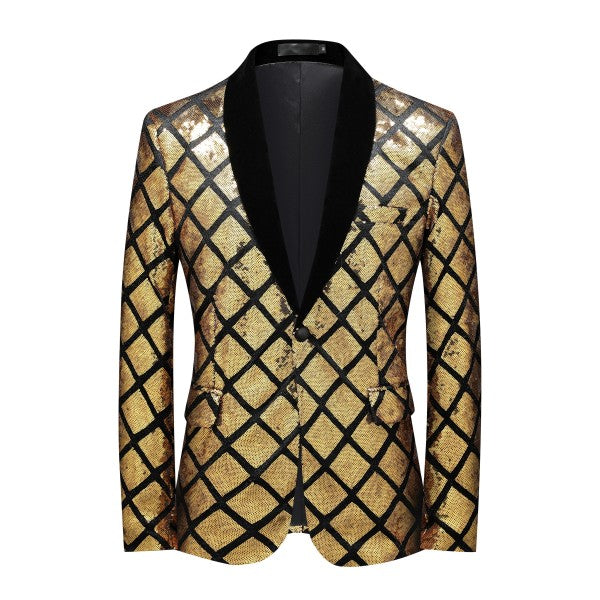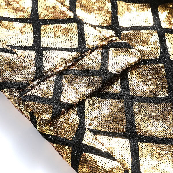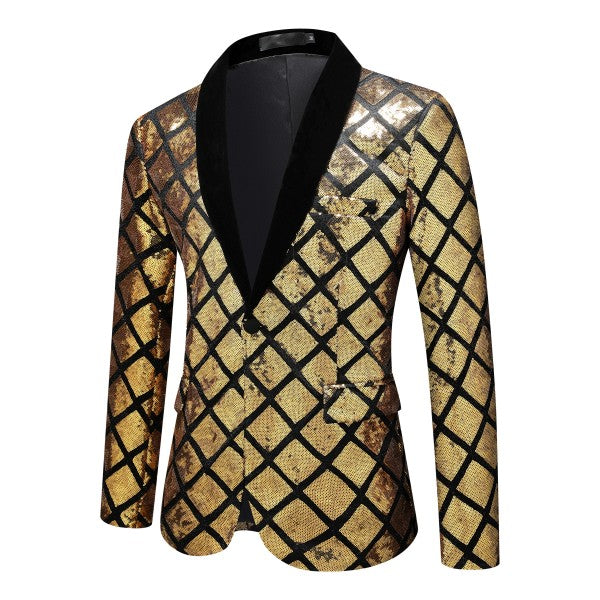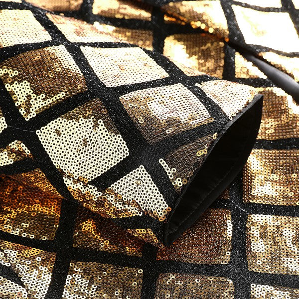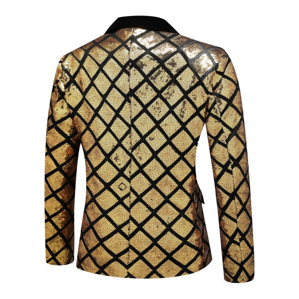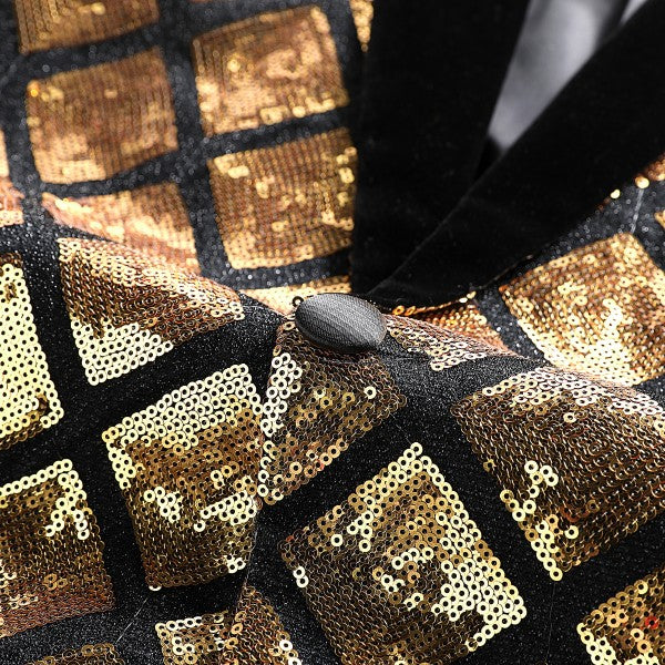 Mens Gold Sequin Plaid 1 Button Tuxedo Jacket