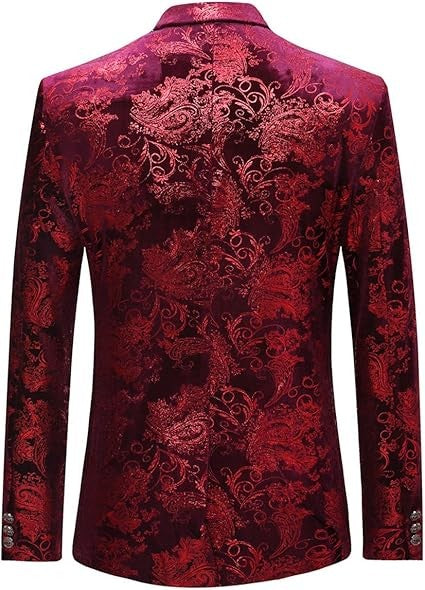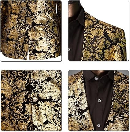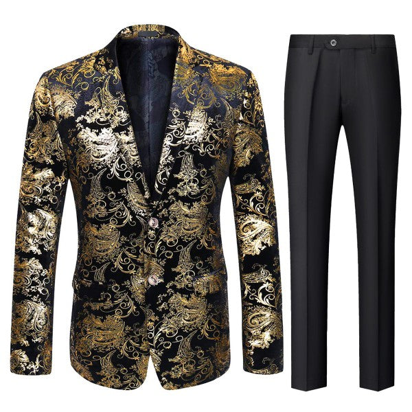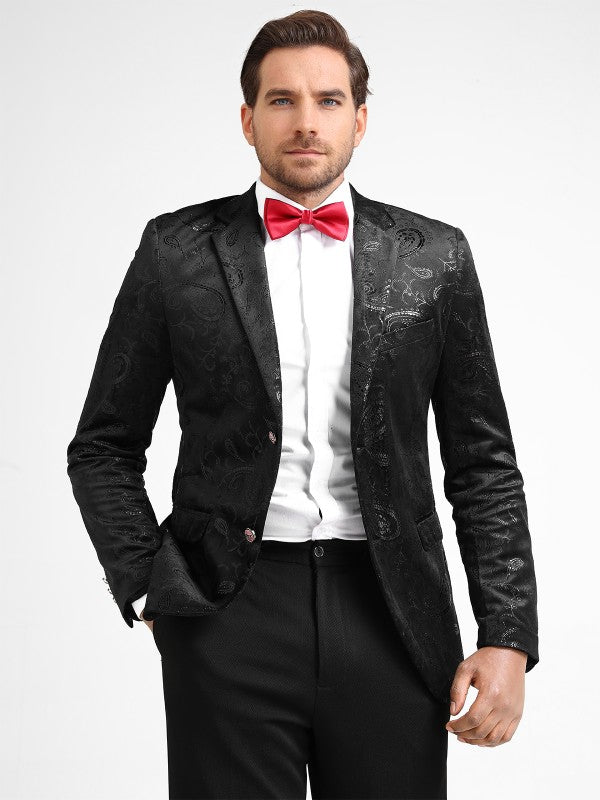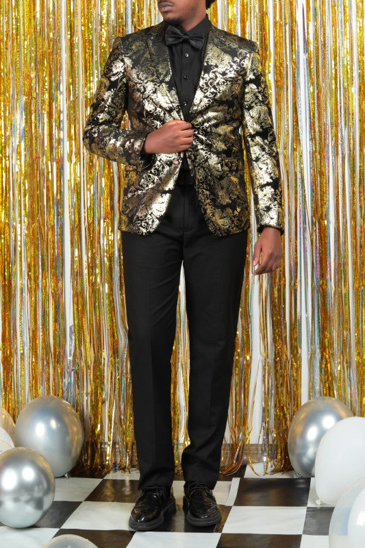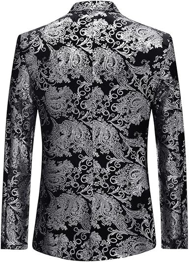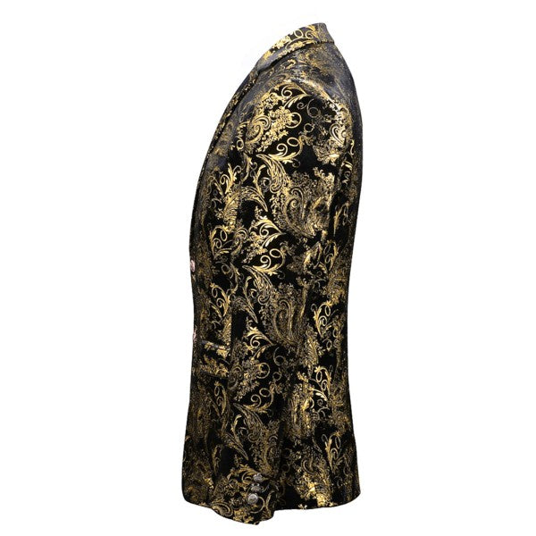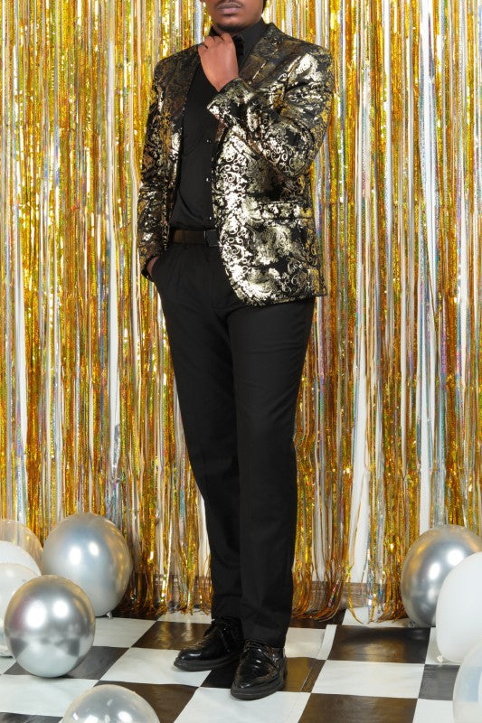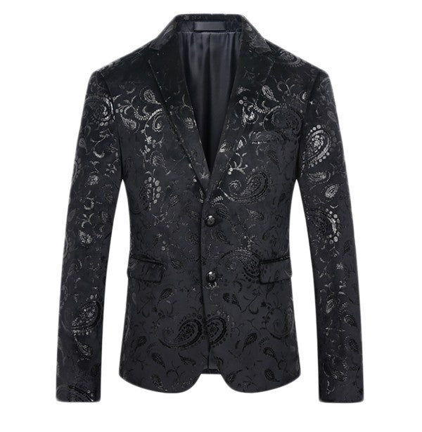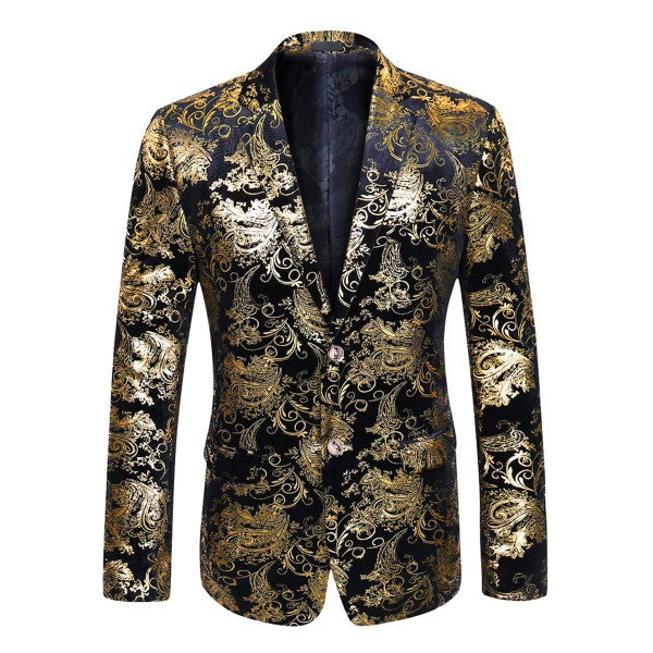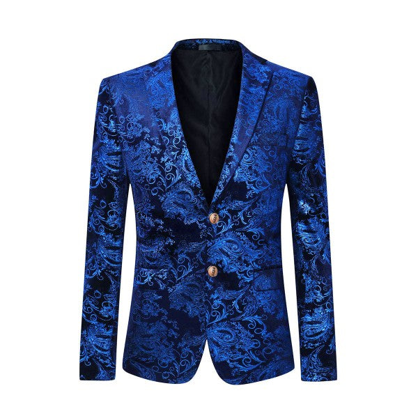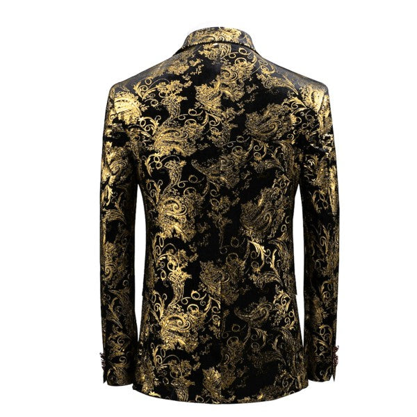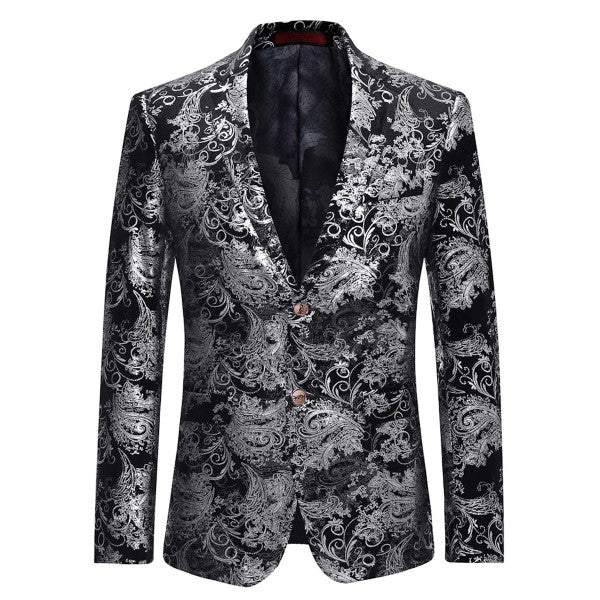 Single-breasted Notched Lapel Center Vent Button Closure Blazer Featuring Hot Stamping Printing Process.