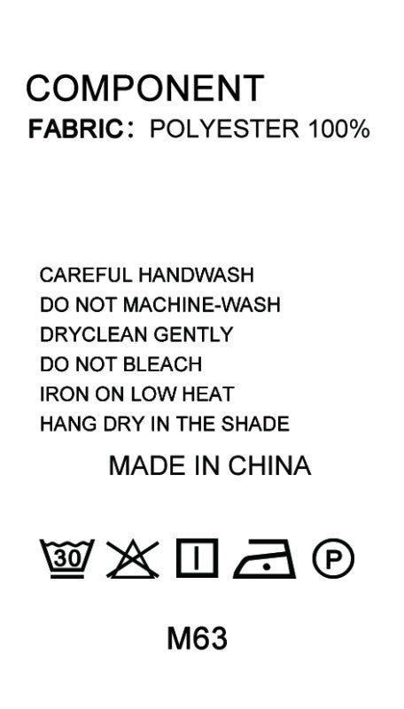 Gently cold wash with like colors, Avoid soak for long time, Warm steamed iron, Hang on.