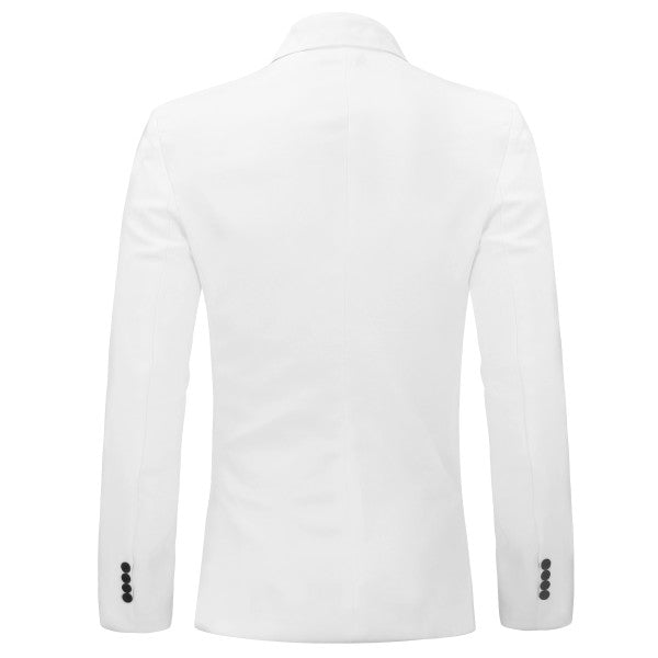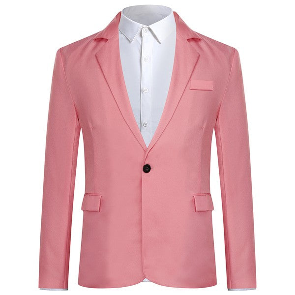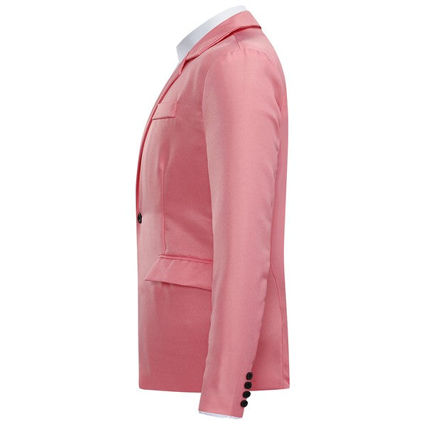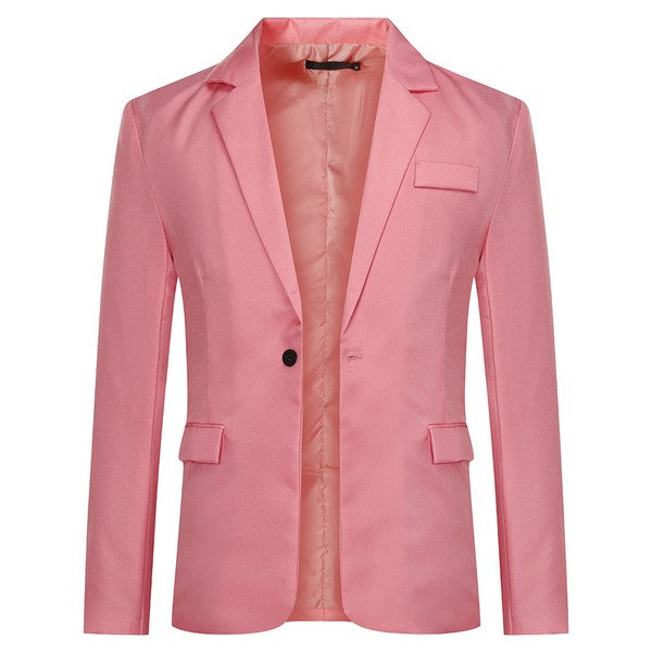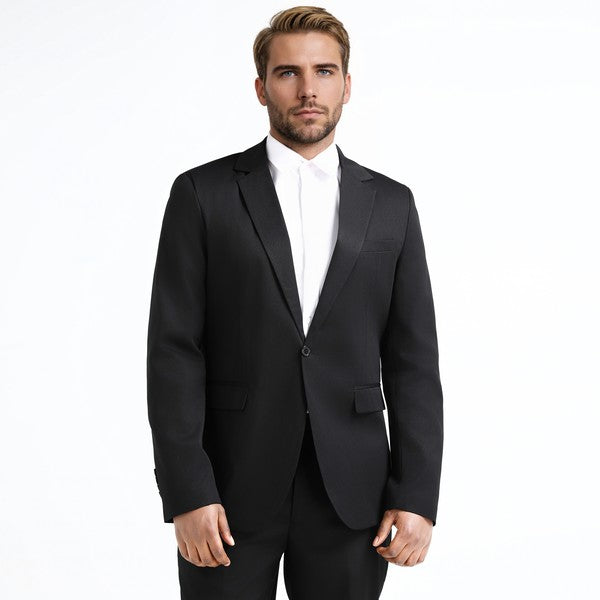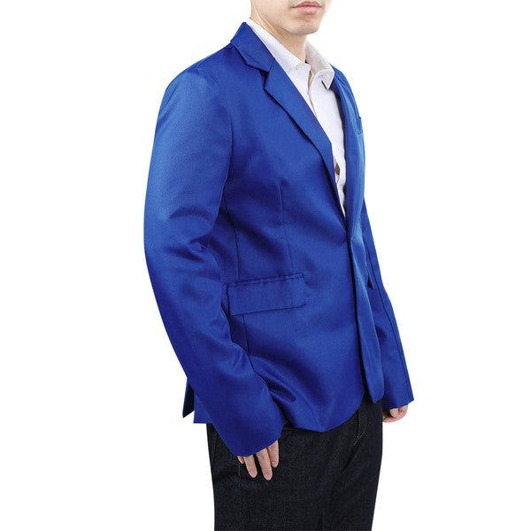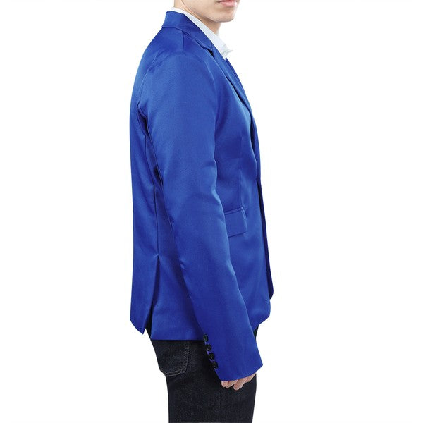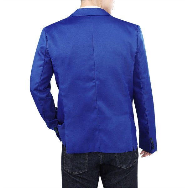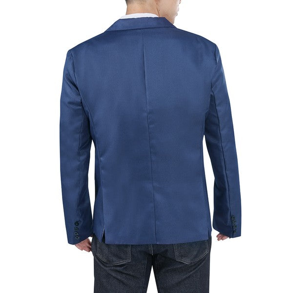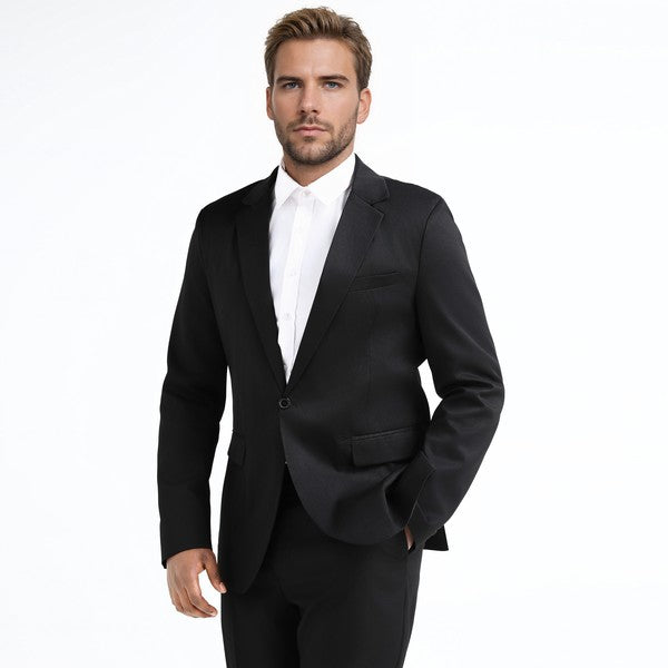 One-button closure, Long sleeves,Two front flap pockets.Single welt pocket at left chest is only for design.Tailored-fit sport coat featuring dual side vents, notched lapel and little shiny fabric makes you standout among the crowds.