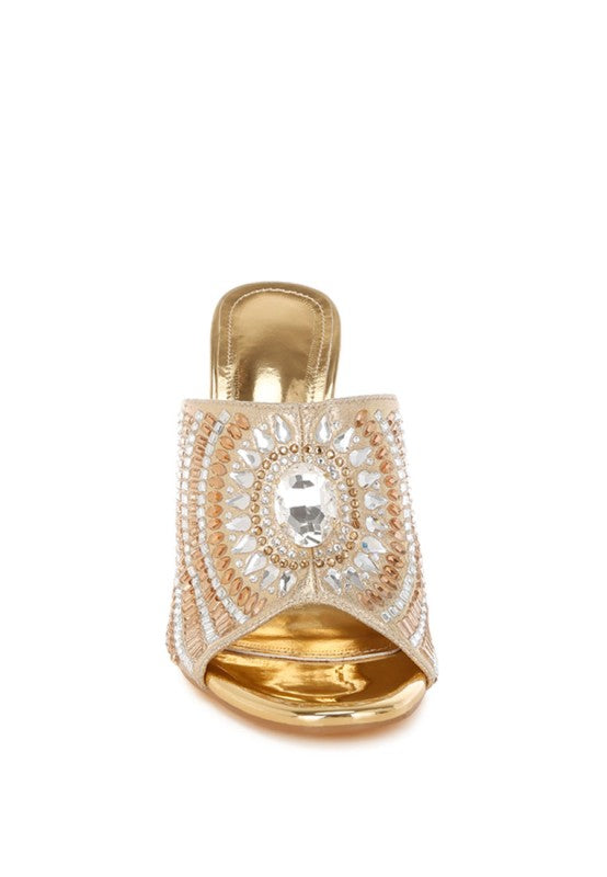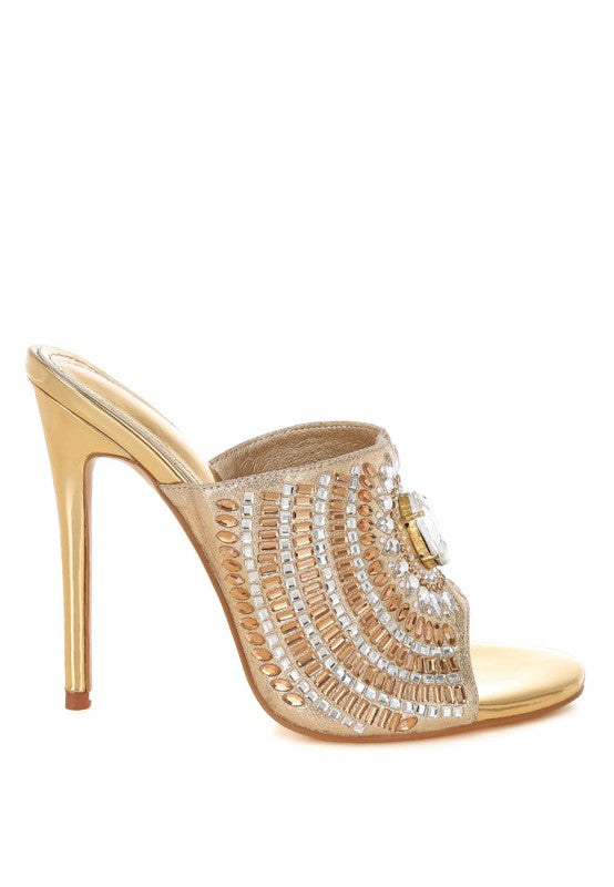 Bling it on with these dazzling embellished heels featuring a roomy rounded toe. The slip on style makes them easy to wear while the stiletto heel adds to the elevation. Team these with your party ensembles and shine bright like a star.