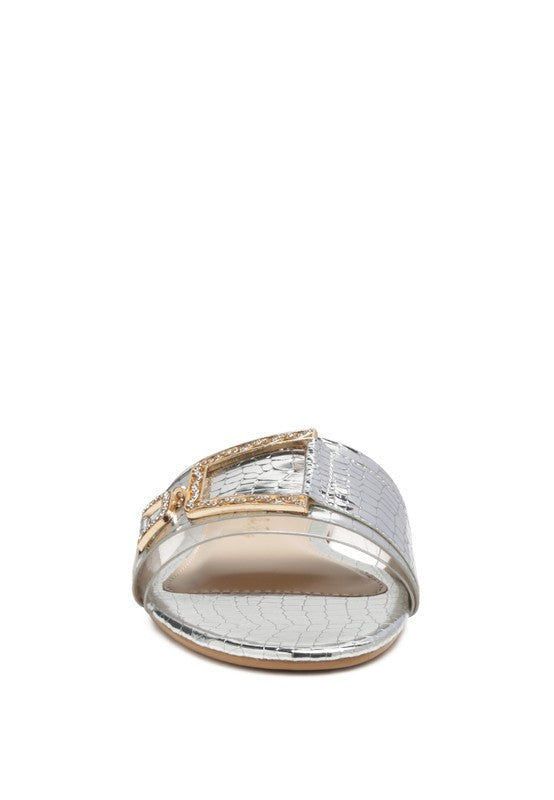 In clear strap detail, the croc textured faux leather jewel detail strap is good for casual occasions.