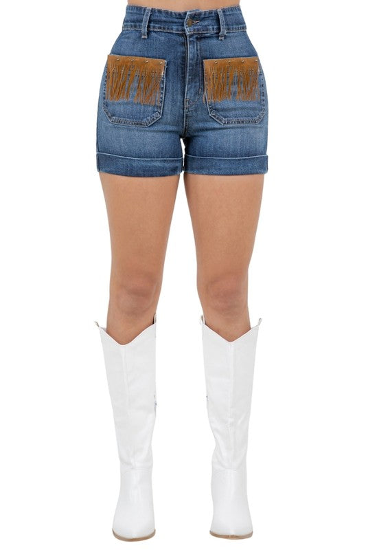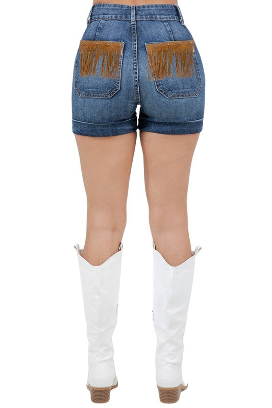 Meet your new favorite shorts: The Willow Denim Fringe Denim Short. Crafted with premium Japanese Cotton, these shorts are built to go the distance and deliver unmatched comfort. Featuring front and back pockets with fringe studded detail, a cuffed hem, and a hand-washed look, these shorts will quickly become a must-have for all your laid-back outings!