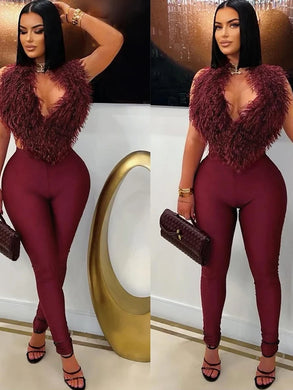 Nibber 2-Piece Set Women Plush Tassel Lace-Up Halter