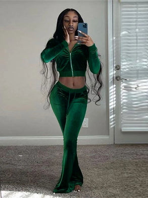 Kliou Solid Velour Two Piece Set