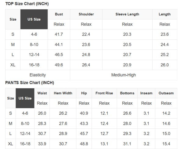 See size chart for approximate measurements.