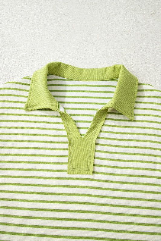 Stripe Collared V-Neck Pullover and Skort Set