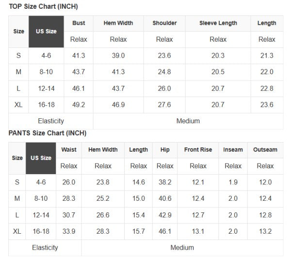 See size chart for approximate measurements.