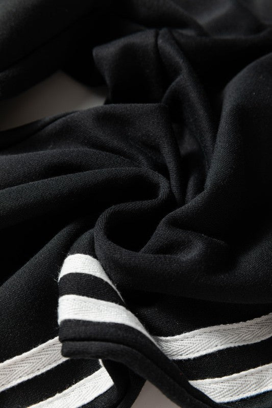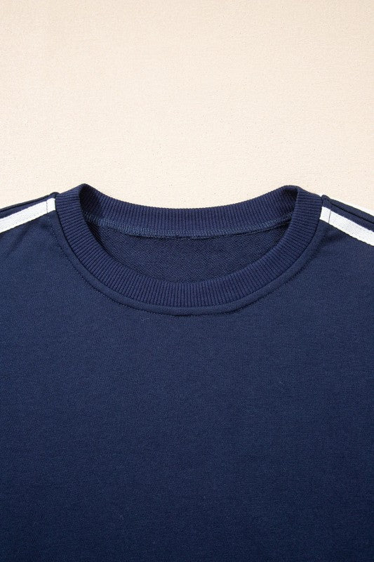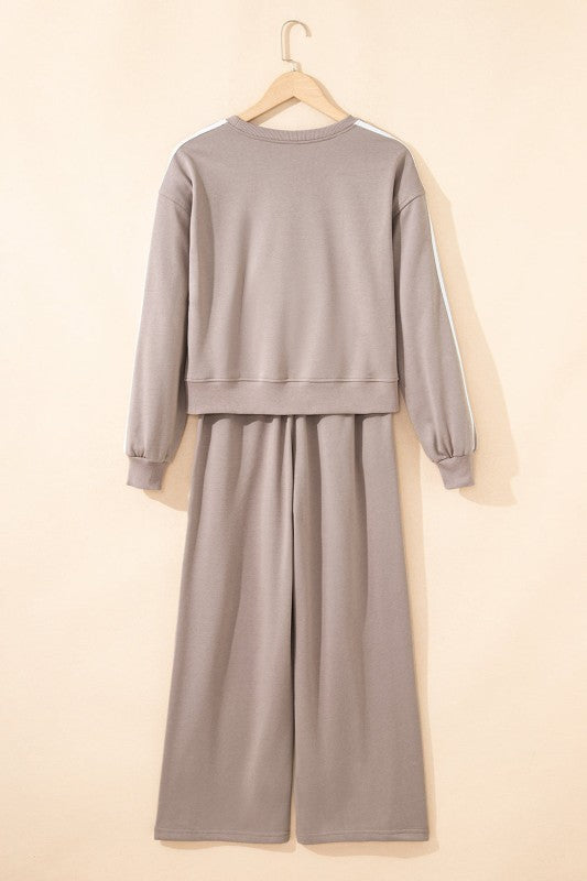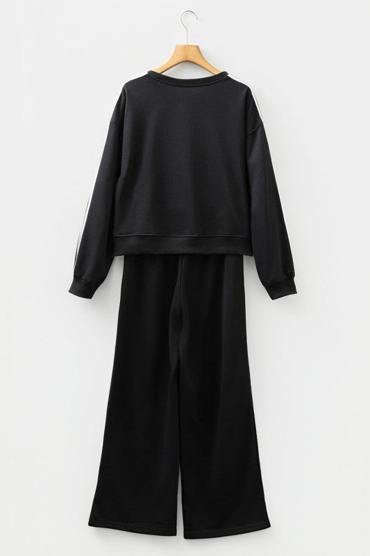 Elevate your casual wardrobe with this varsity striped two-piece set that effortlessly blends style and comfort. The crewneck pullover features a classic design perfect for everyday wear, while the high-waisted elastic sweatpants provide a flattering, snug fit. Whether you're running errands, hitting the gym, or lounging at home, this sporty set delivers the cozy comfort you crave without compromising on looks. Polyester/Cotton