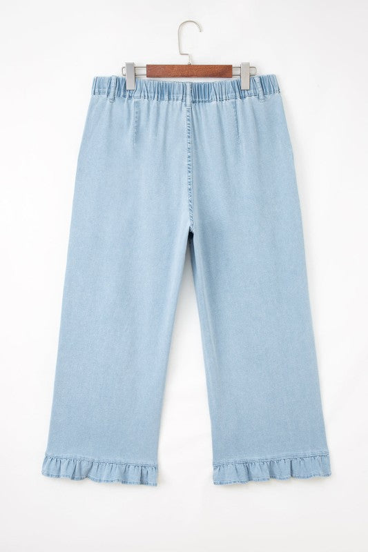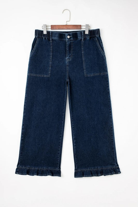 Designed for curves, these plus-size jeans deliver effortless style and comfort. The relaxed silhouette flows beautifully while the ruffled hem adds a contemporary edge. An elastic waistband ensures a flexible, forgiving fit that moves with you throughout the day. Perfect for creating a flattering silhouette that celebrates your shape with confidence and ease.