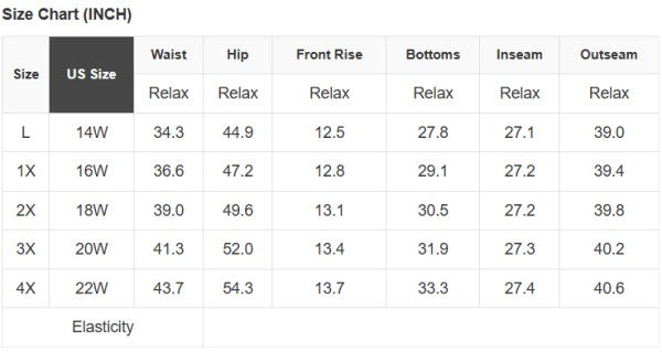 4X: (Waist), (Hips), (Inseam), (Length)